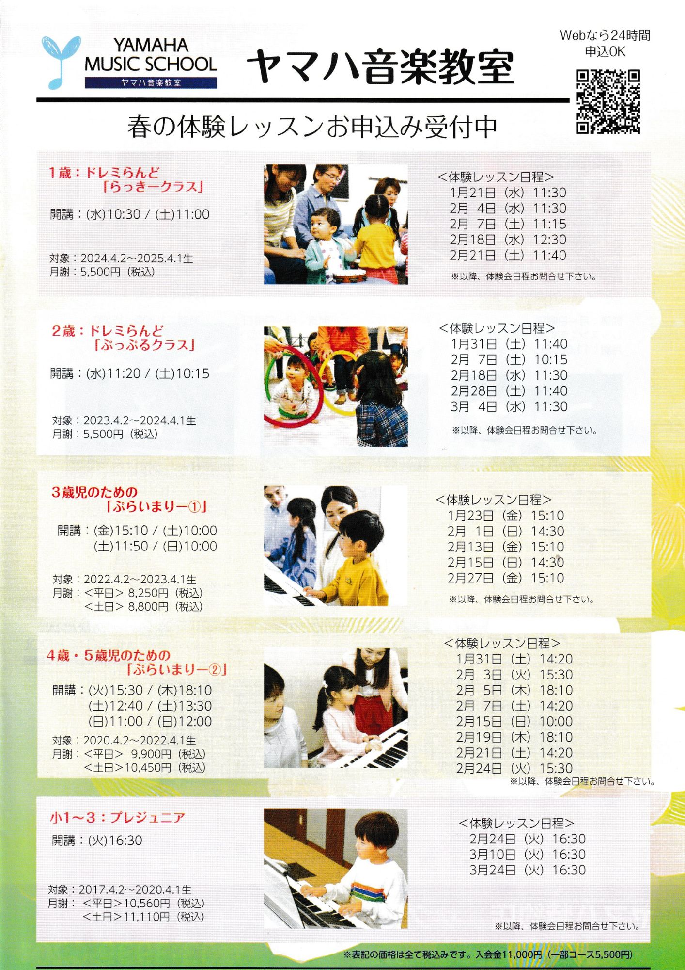 1歳から大人のコースまで充実していますので、是非ご家族で足をお運びください。