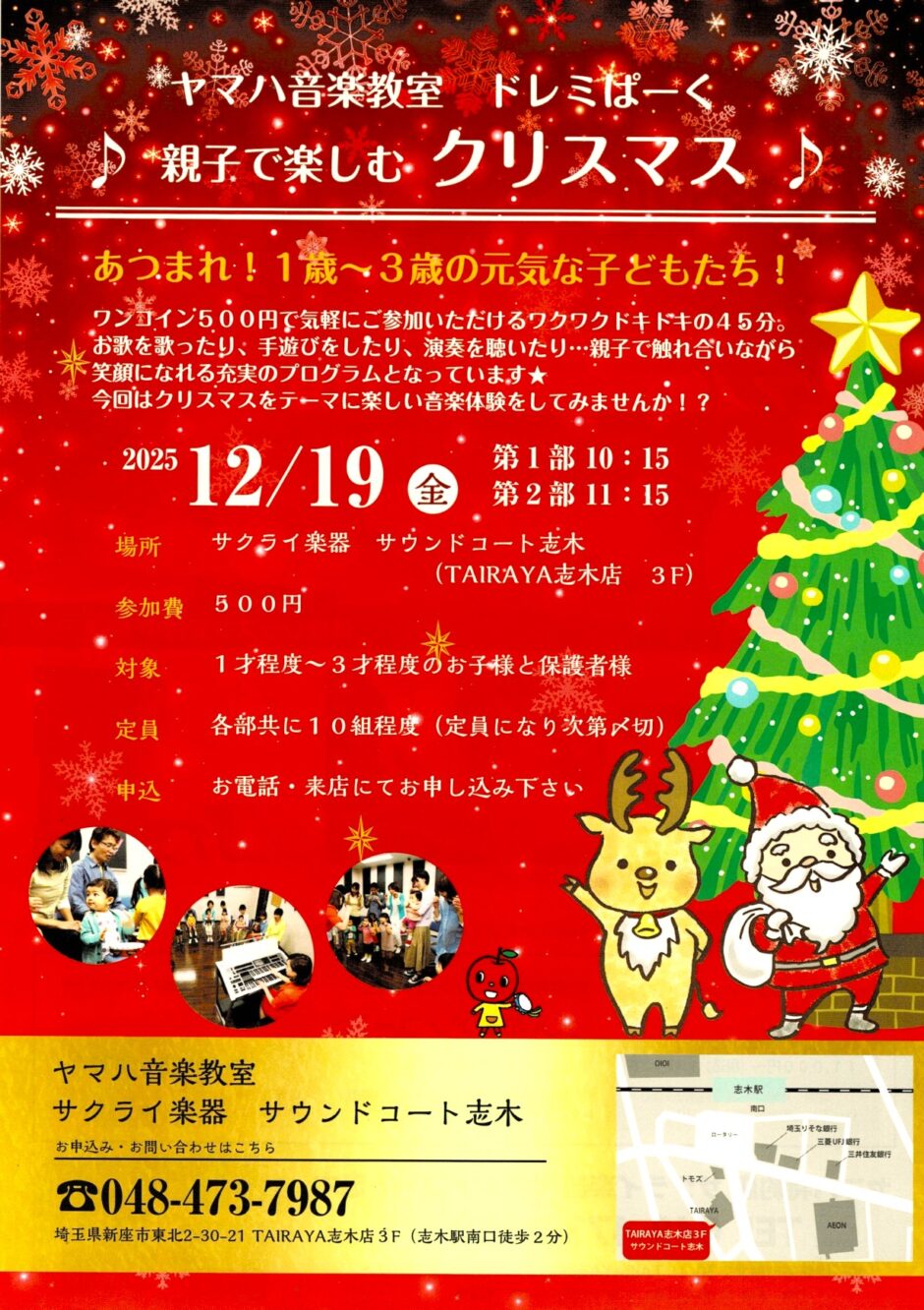 ホーム サウンドコート志木 クリスマスコンサート 2025年11月8日 SHARE ツイート シェア はてブ LINE Pocket あつまれ!1歳~3歳のおともだち✨ 🍎ドレミぱーく🎄親子で楽しむクリスマス🍎