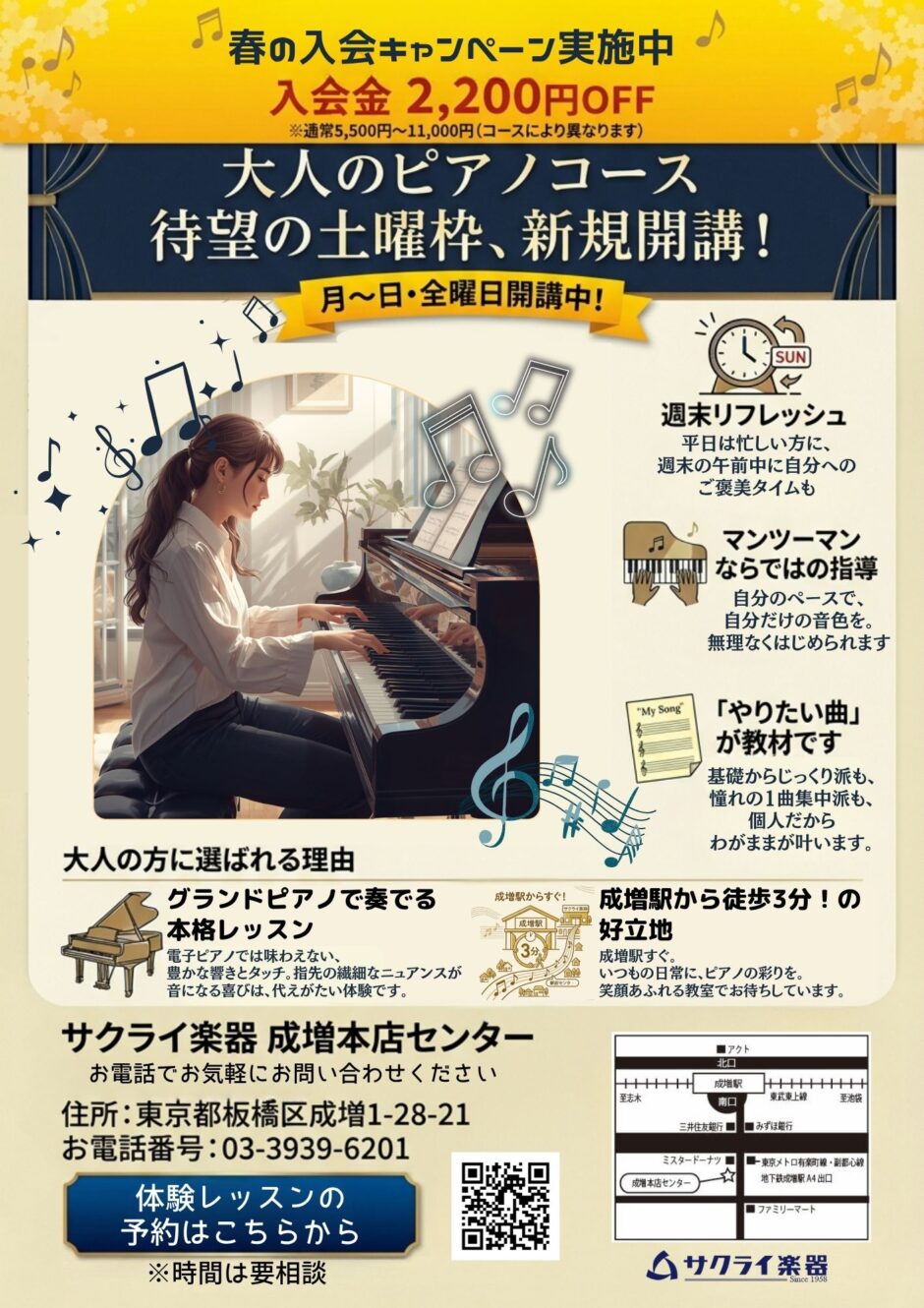 土曜日大人ピアノコース新開講 成増本店