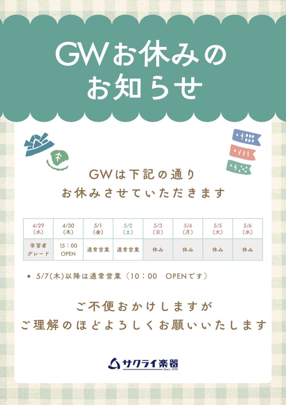 📢ゴールデンウィーク営業時間変更のお知らせ